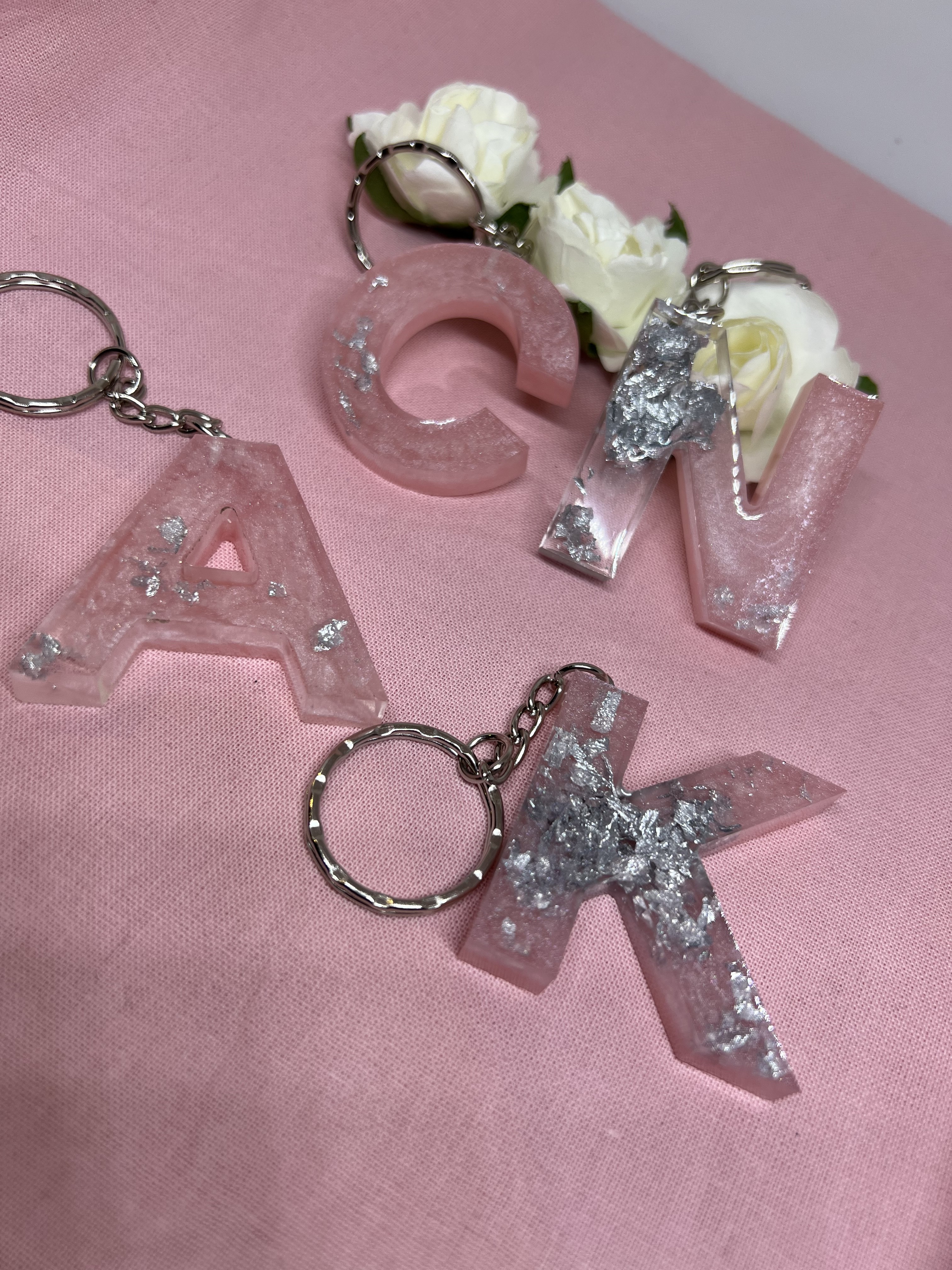 Porte clef lettre rose et argent